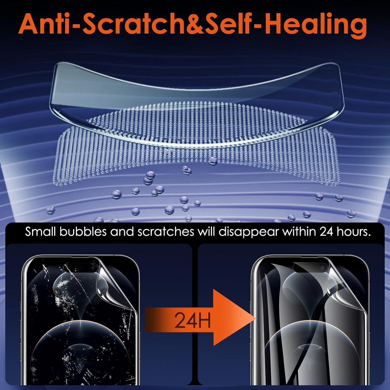 Equipped with slow rebound technology and self-healing properties, this screen protector automatically repairs minor scratches and bubbles within 24 hours. Should you notice bubbles following installation, rest assured that they will dissipate within a day, leaving your screen pristine and smooth.