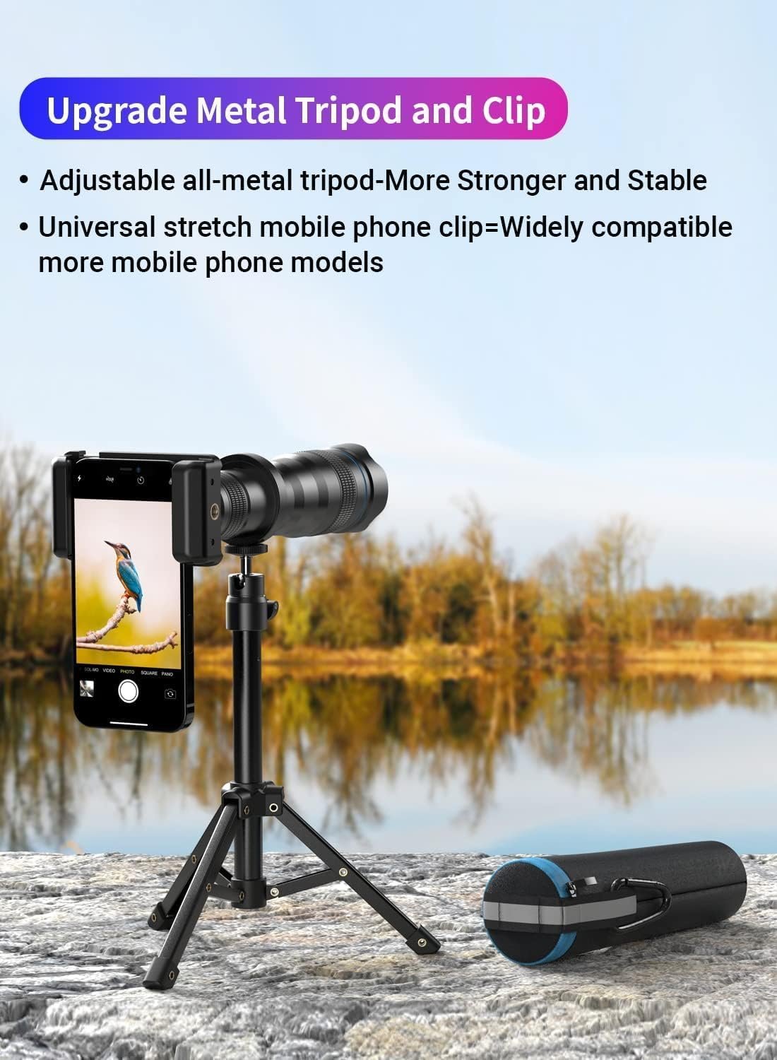 The 36X telephoto lens comes with a sturdy aluminum alloy tripod, ensuring stable and shake-free images and videos. The tripod’s fixed ring allows for hands-free operation, perfect for long-distance and extended shooting sessions. The included phone clip is compatible with 99% of smartphones on the market, including popular brands such as iPhone, Google, Samsung, OnePlus, Sony, LG, and Huawei. If you require additional models, feel free to reach out to us for assistance.