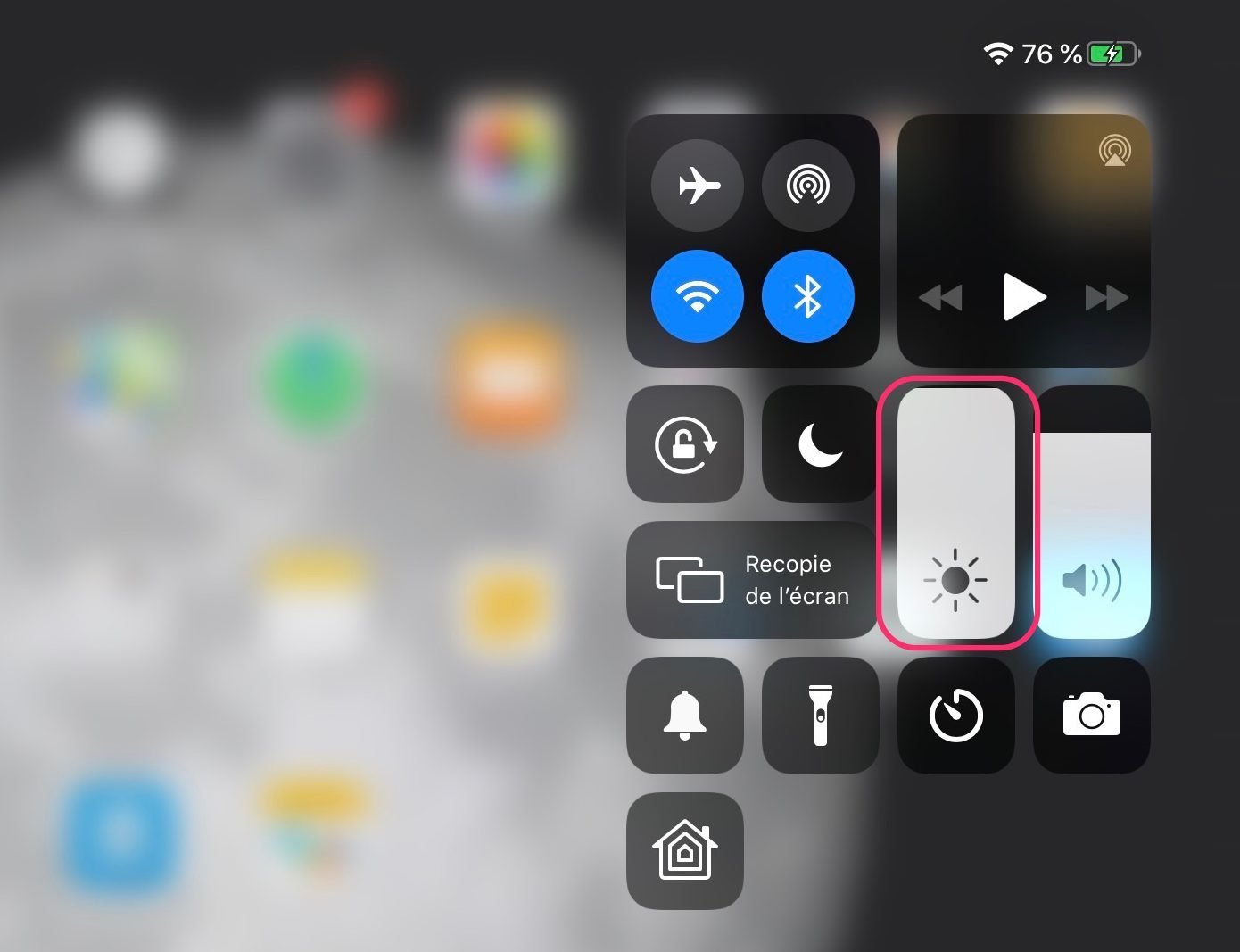 Make the control center appear. Then on the brightness bar of the screen, make a long or 3D touch support for compatible devices.
