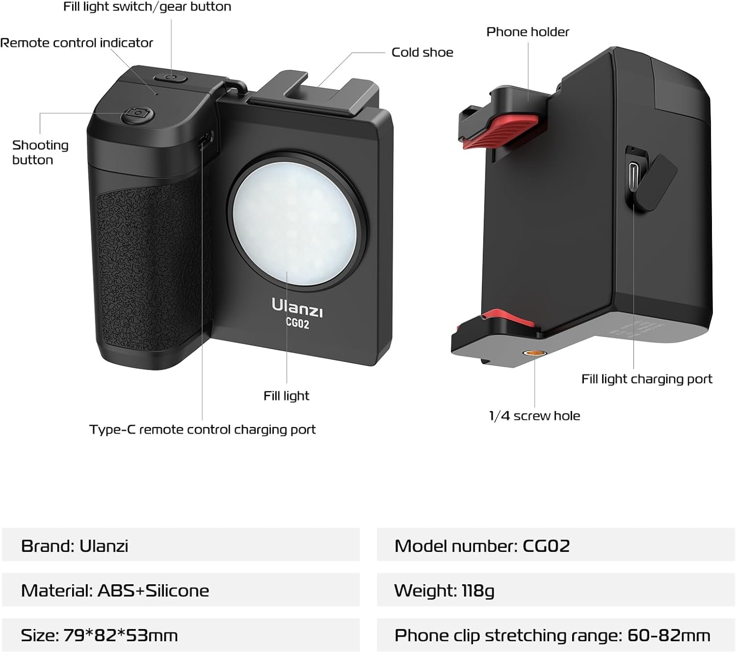 2. Charging: Ensure to charge the remote controller and the fill light separately for optimal performance.