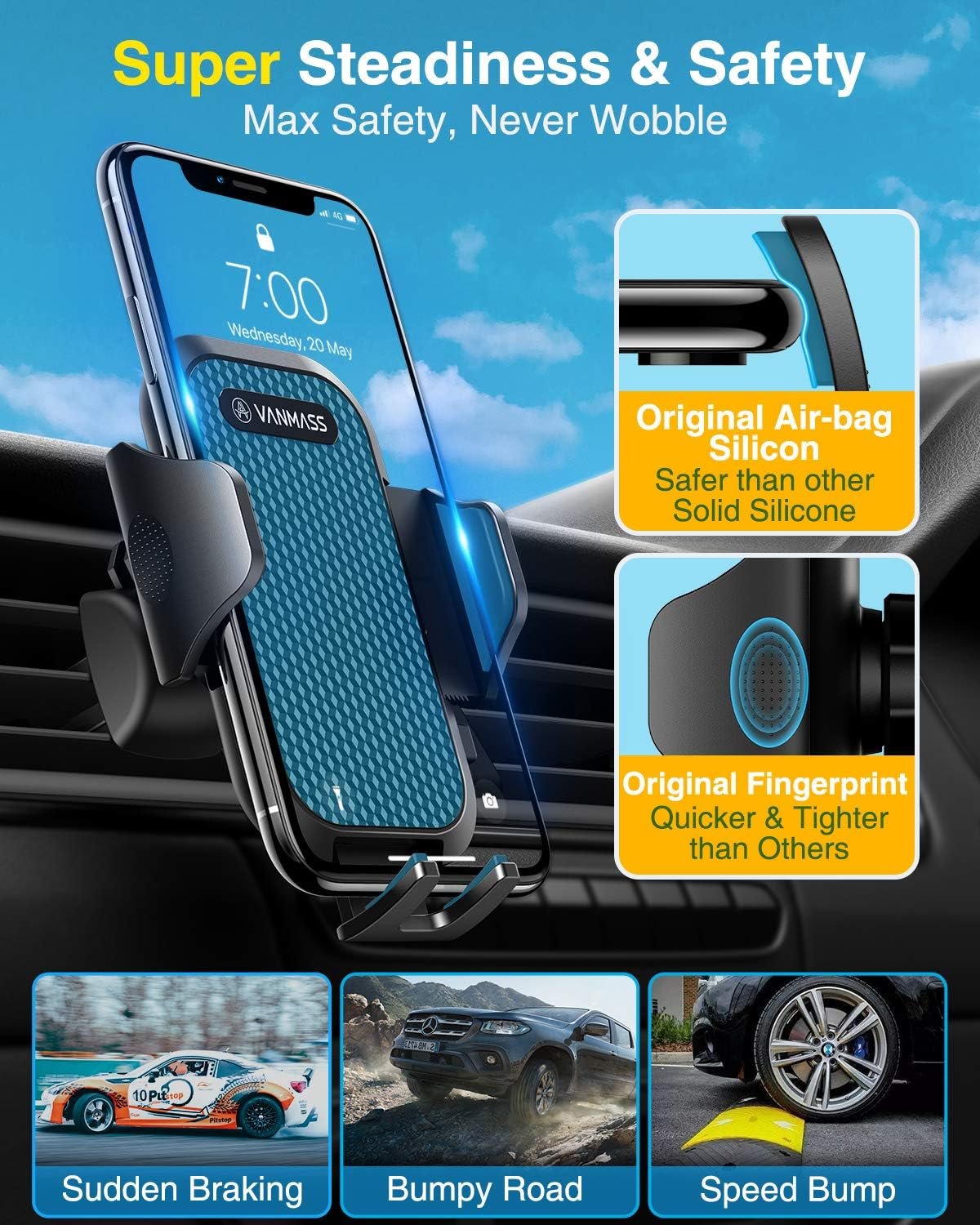 Discover the future of hands-free convenience with the VANMASS Pro Version Universal Phone Holder, a product that redefines versatility and reliability. With over eight years of dedication to designing high-quality car phone mounts, VANMASS stands at the forefront of innovation, offering unparalleled safety, stability, durability, and compatibility for a wide range of environments and climatic conditions.